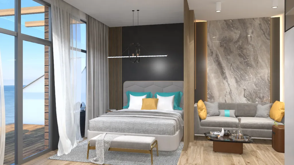 - הפרויקט תוכנן על פי תקני הנוף ואזור הנופש. החלק החיצוני משתלב באופן מושלם בסביבה הירוקה. החלק הפנימי בעיצוב מודרני צעיר ומזמין פנים. כל חדרי המלון יעוצבו בסגנון המשלב מזרח ומערב וכוללים את כל פריטי הריהוט , האבזור והנוחות בסטנדרטים גבוהים בתחום התיירות.